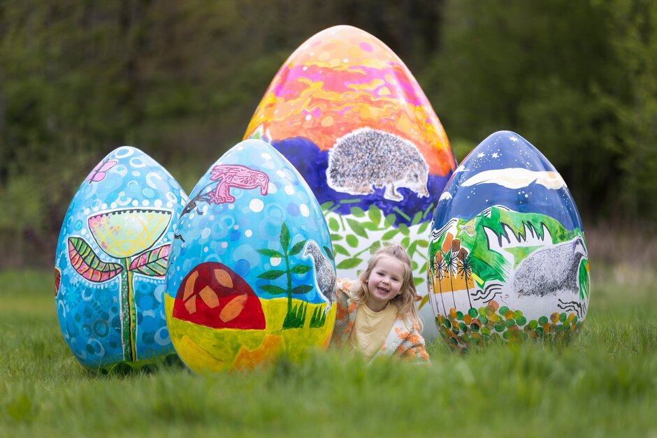 Join the Big Easter Challenge. Exploring Occombe Farm, Cockington Country Park and Berry Head National Nature Reserve, on an egg-citing mission. Scattered across these charming places in Torbay, are 12 oversized eggs, each containing a clue to find a hidden letter. Collect all the letters to make a springtime word.