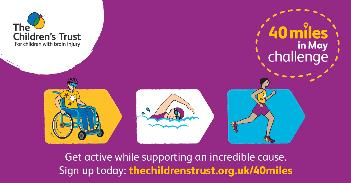 All funds raised in our 40 miles in May Challenge will help support The Children’s Trust to deliver rehabilitation, education and community services through skilled teams who work with children and young people, and their families.